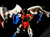 Los más obvios son las metralletas de sus antebrazos, reemplazando a los cañones "Nul Ray". Otro accesorio más que interesante es el de las espadas/sables en su cadera. Pueden ser usadas individualmente o combinadas en una suerte de doble cimitarra, muy impresionante.